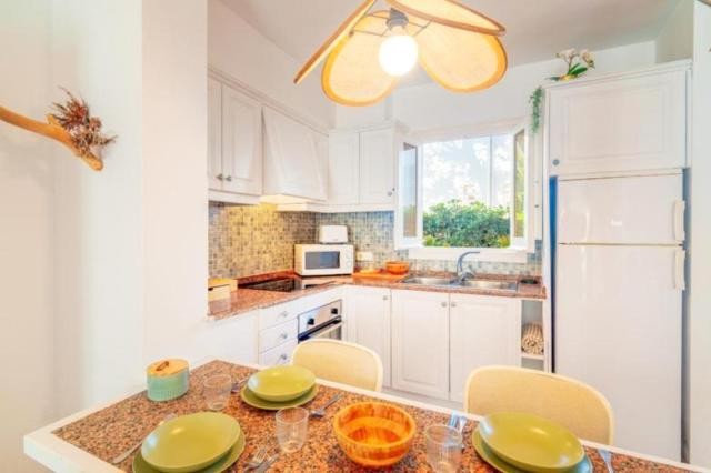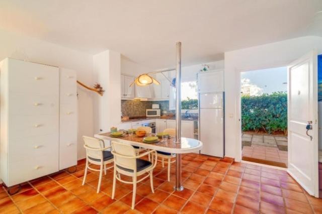 Bonito apartamento duplex en Calan Bosch en un exquisito complejo, consta de 60 m², en la primera planta encontramos la habitación doble con armario empotrado con acceso a una agradable terraza y baño completo, en la planta baja, cocina completamente reformada con mucho estilo semi-abierta al salón comedor desde el cual accedes a una terraza donde tienes vistas a las zonas comunes y piscina. Posibilidad de licencia turistica.