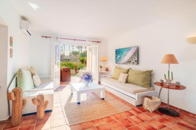Bonito apartamento duplex en Calan Bosch en un exquisito complejo, consta de 60 m², en la primera planta encontramos la habitación doble con armario empotrado con acceso a una agradable terraza y baño completo, en la planta baja, cocina completamente reformada con mucho estilo semi-abierta al salón comedor desde el cual accedes a una terraza donde tienes vistas a las zonas comunes y piscina. Posibilidad de licencia turistica.